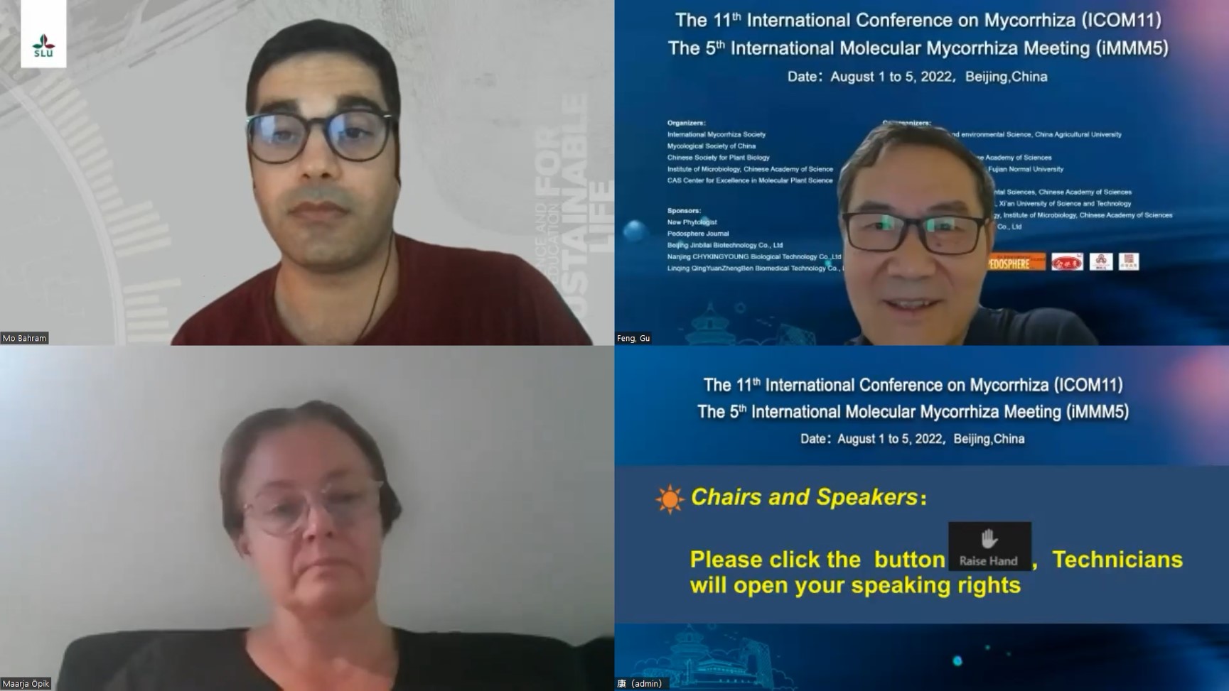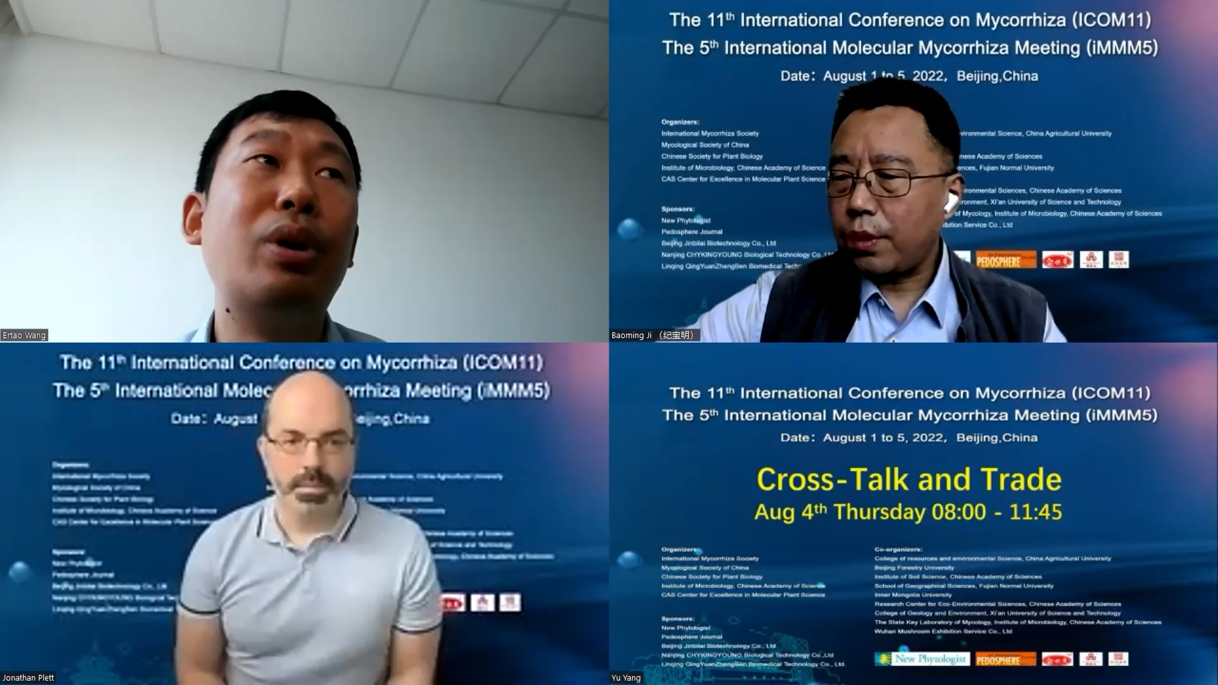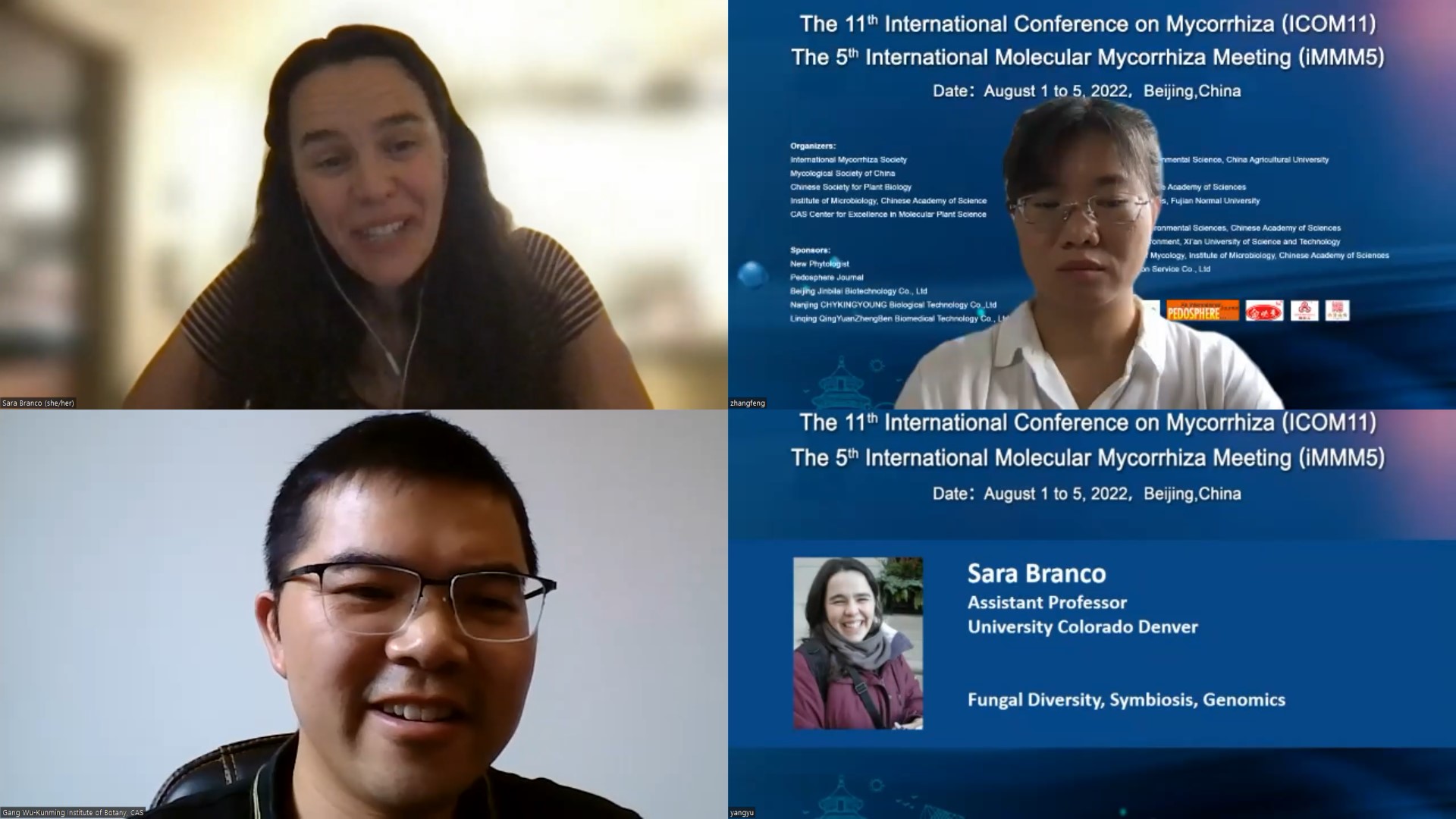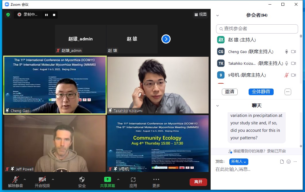 第十一届国际菌根大会(ICOM11)和第五届国际分子菌根大会(iMMM5)于2022年8月1-5日以网络视频连线的方式成功举办。本次会议共特邀来自14个国家的25个大会报告,共设置有16个分会场,安排口头报告119个,展示58篇海报。交流内容涵盖菌根分类学、生态学、全球变化、分子生物学、细胞生物学、多组学、生态恢复和先进研究应用技术等方面的研究热点问题。