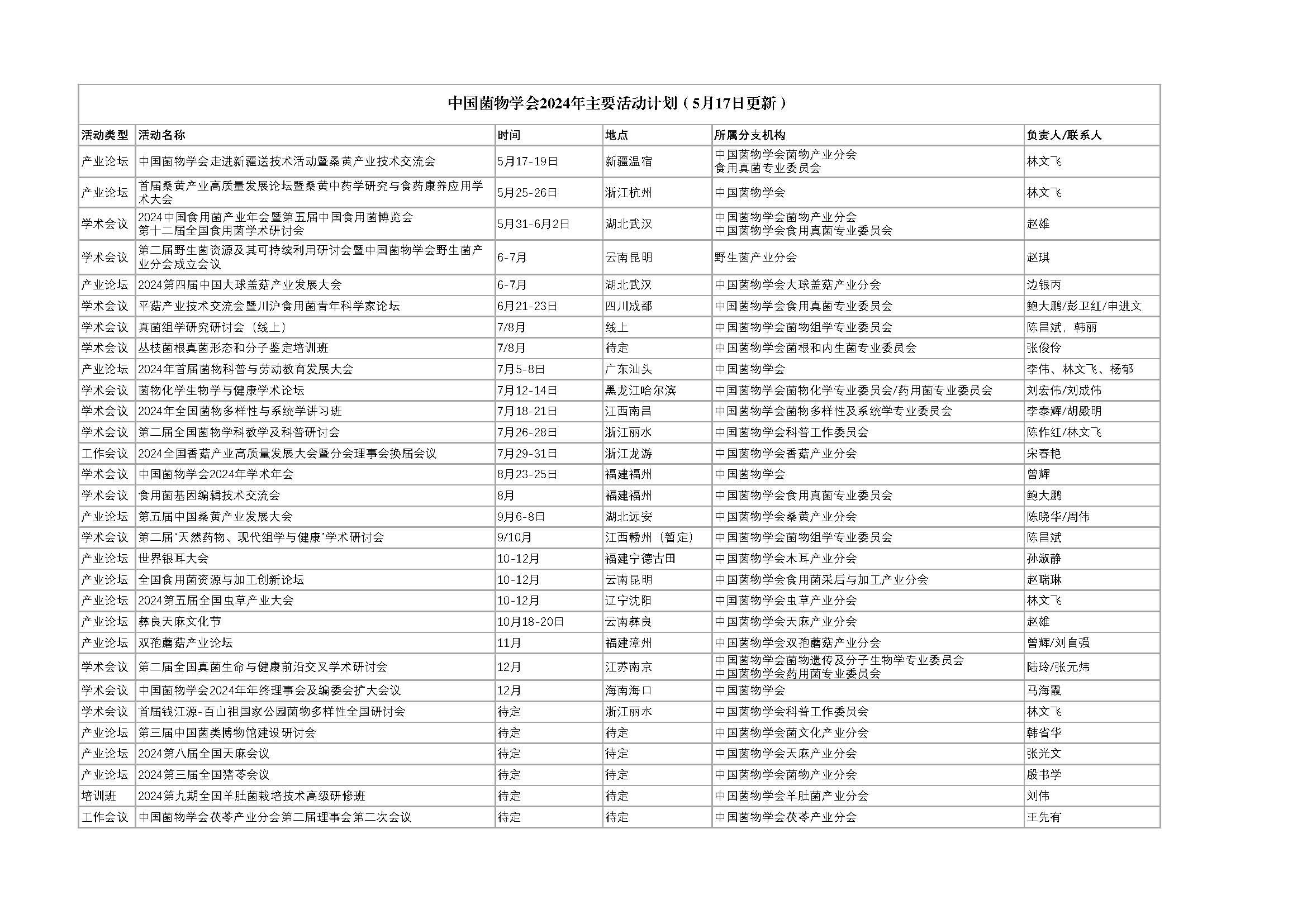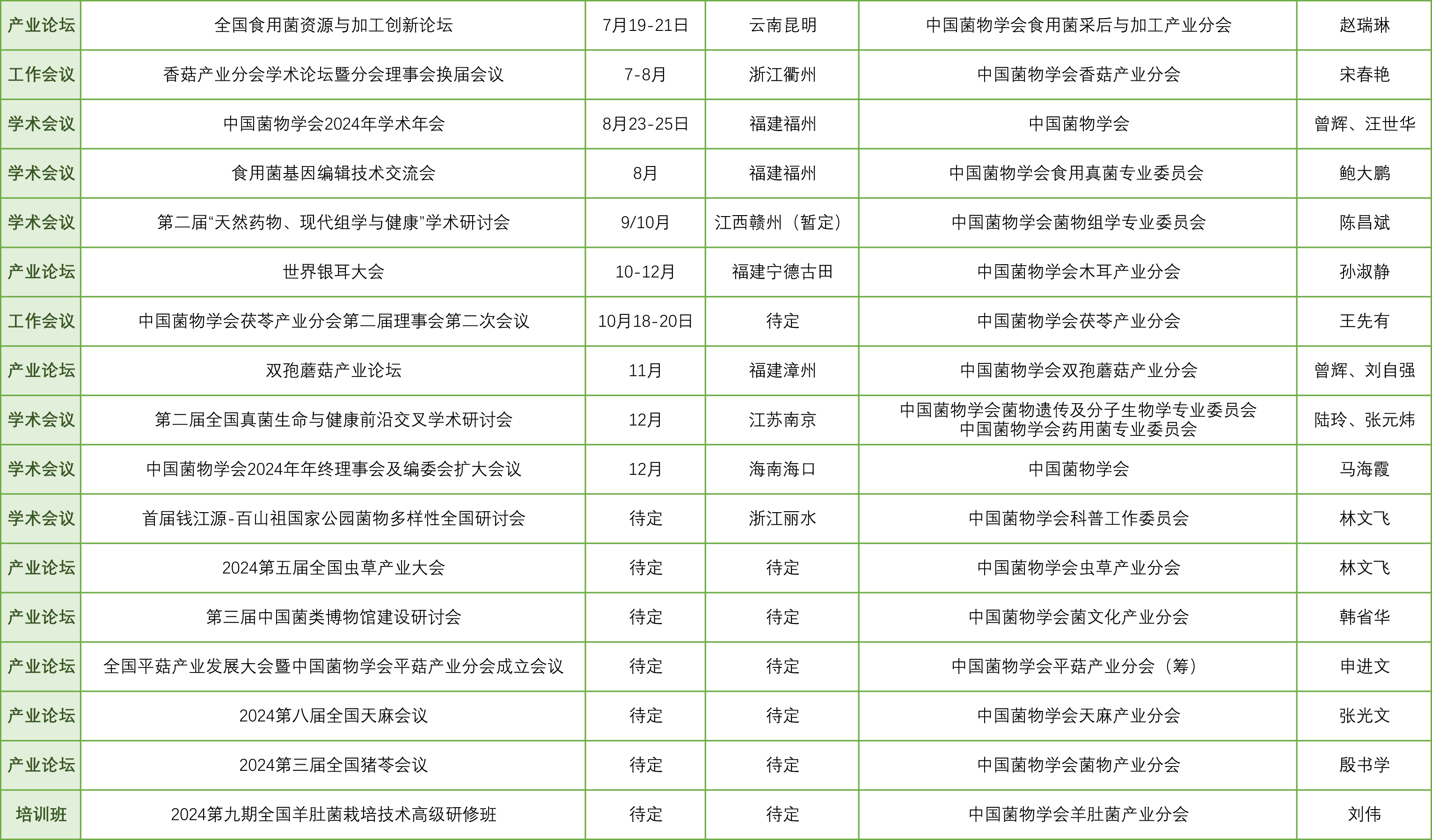 以上为中国菌物学会2024年主要活动计划(持续更新中),欢迎各位会员代表关注。